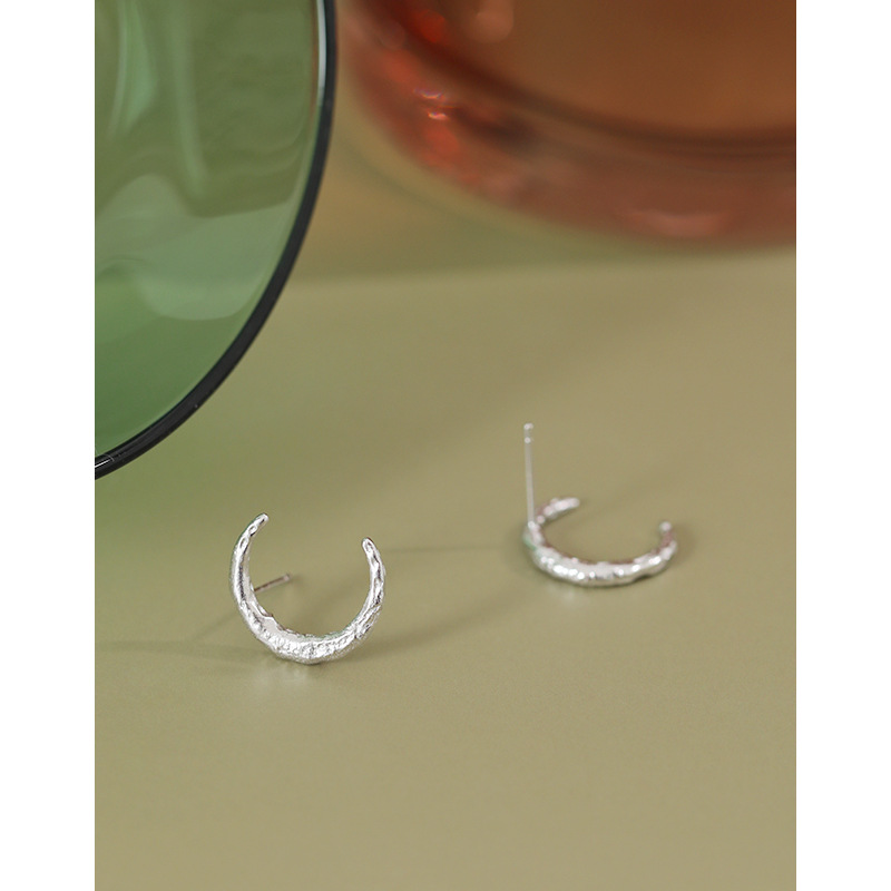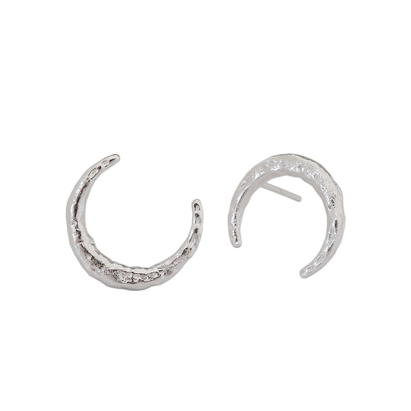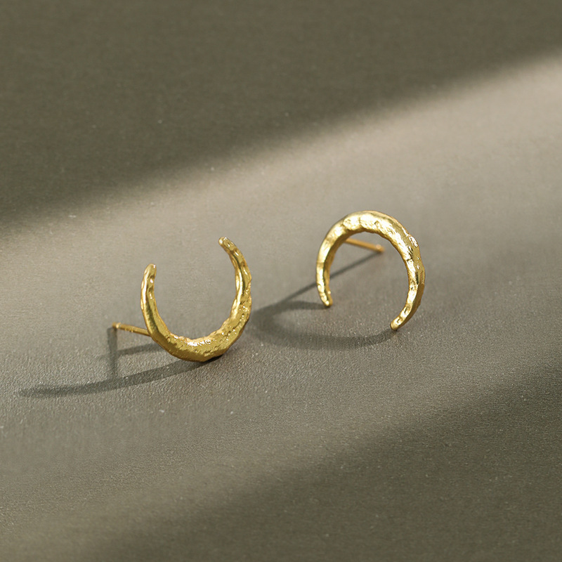 509韩版S925纯银耳钉小众气质金银锡箔纸纹月亮女耳钉简约银耳饰