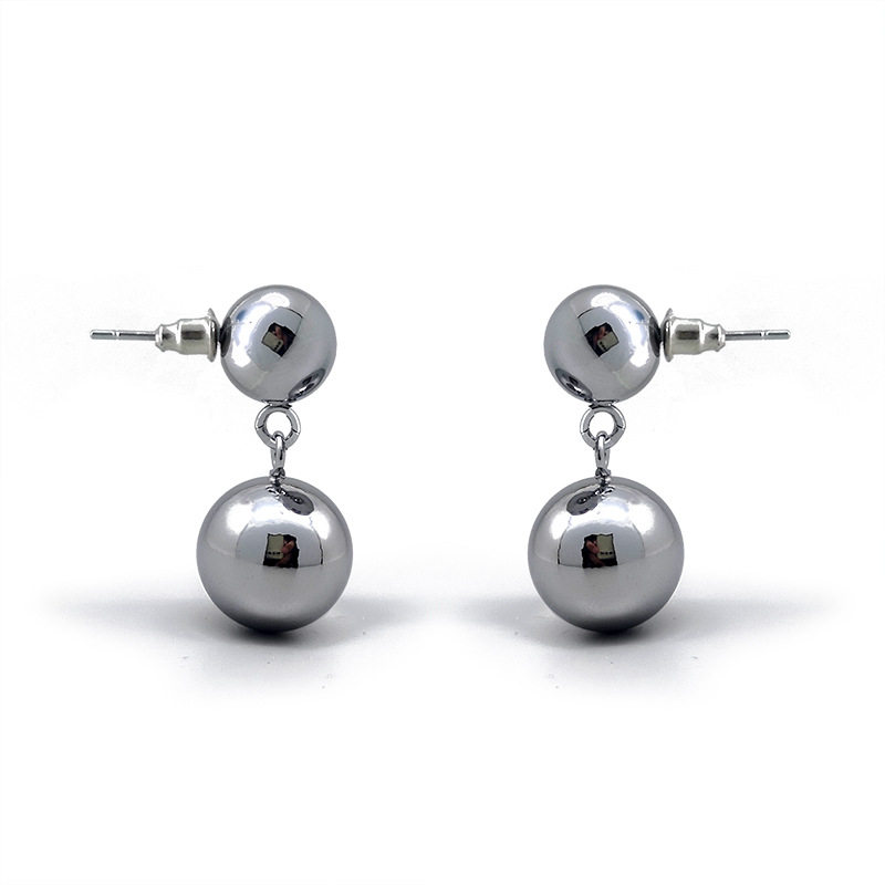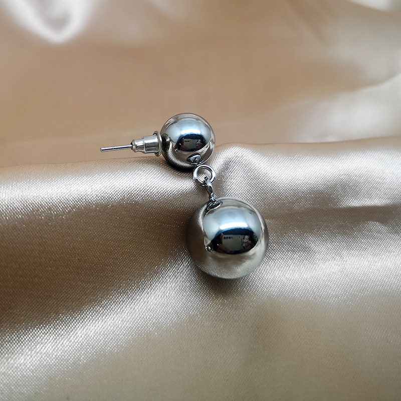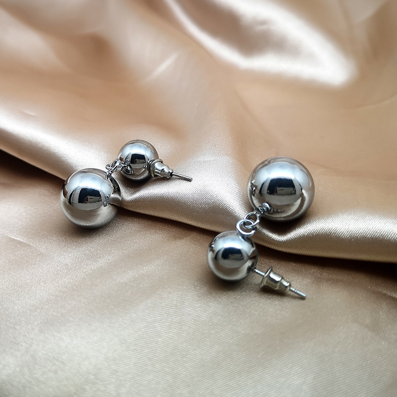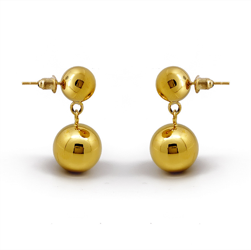 简约复古宫廷金色大小铜珠珠简约耳坠金银色合金白领百搭耳环女
