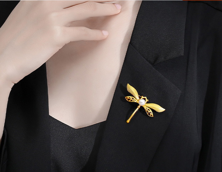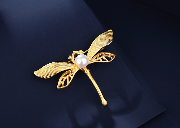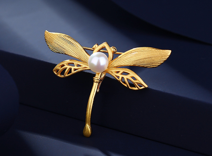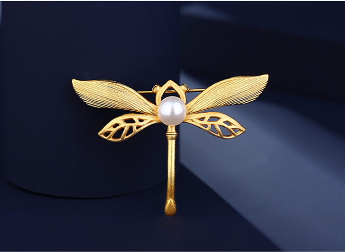蜻蜓智慧科技定制纯银镀金镶珍珠胸针