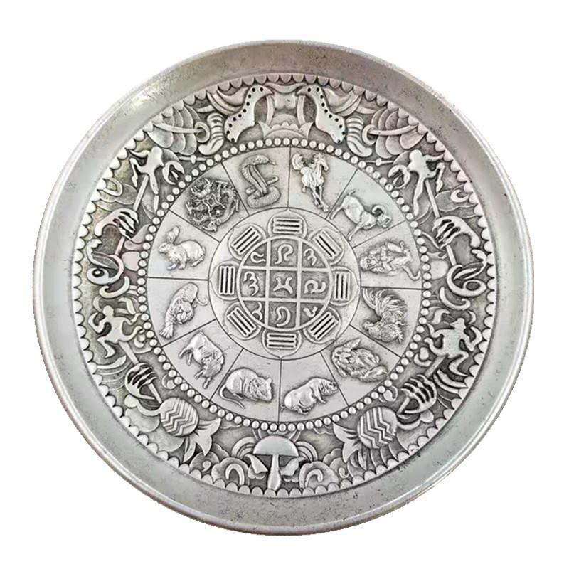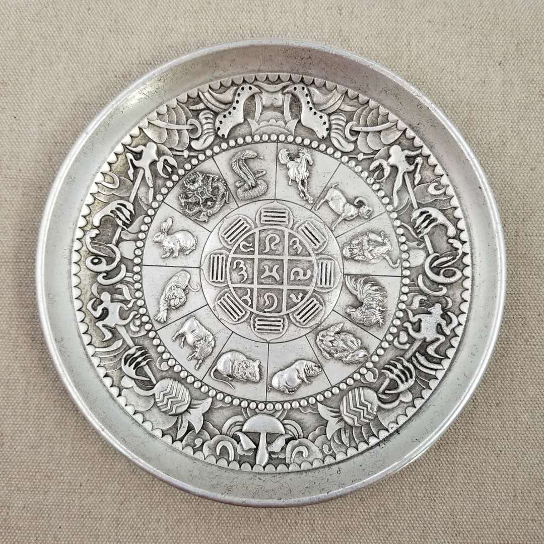 仿古工艺品十二生肖莲花盘收藏