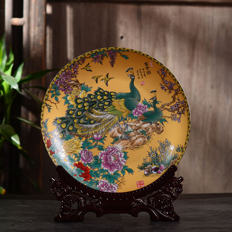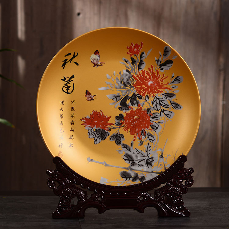 景德镇10英寸陶瓷装饰挂盘工艺礼品盘摆件金色纪念盘来图定制