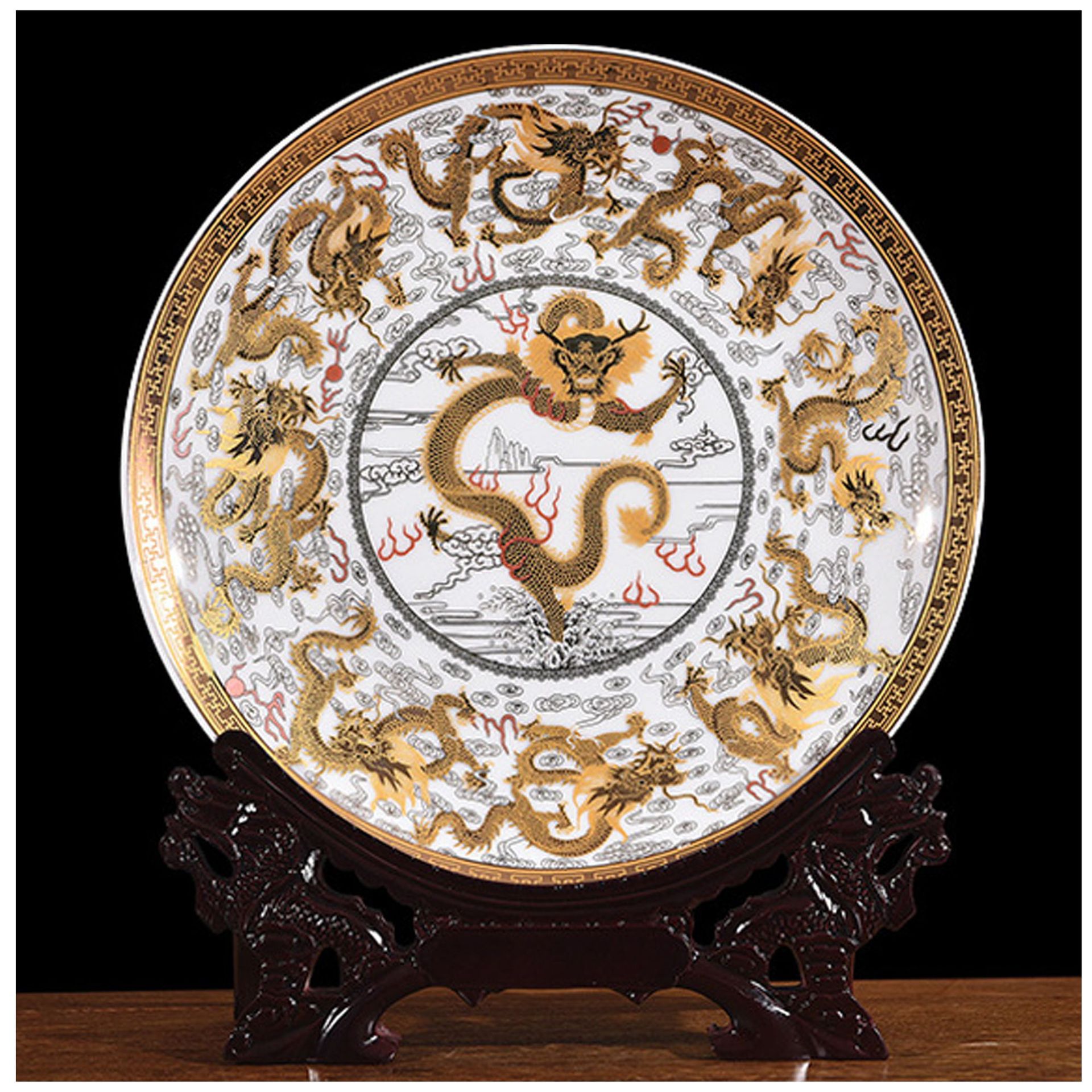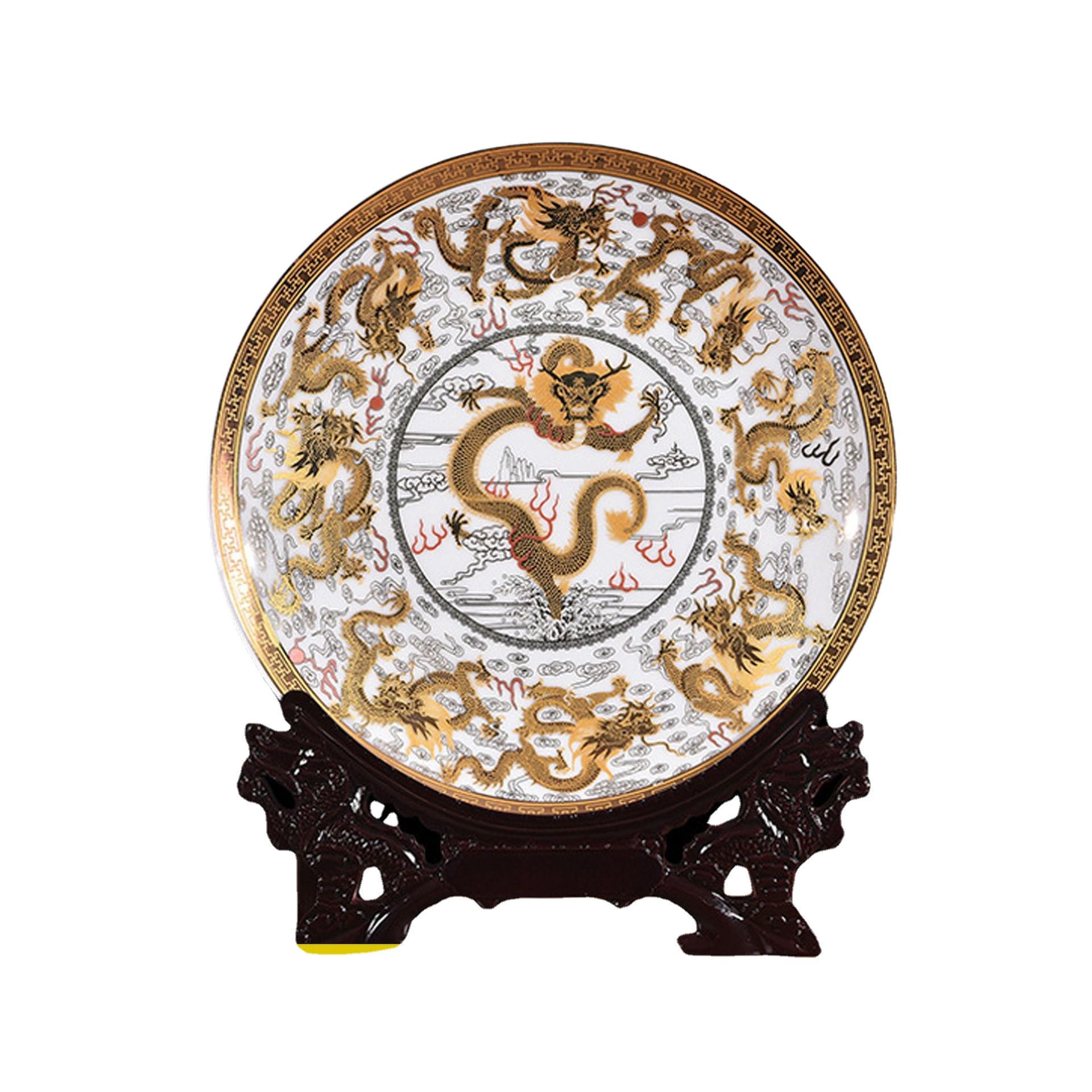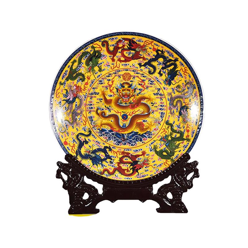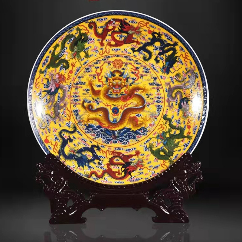 景德镇陶瓷器九龙九凤摆盘年终礼品中式陶瓷纪念盘摆件可加logo