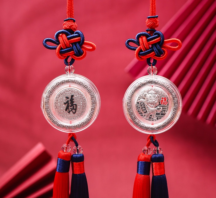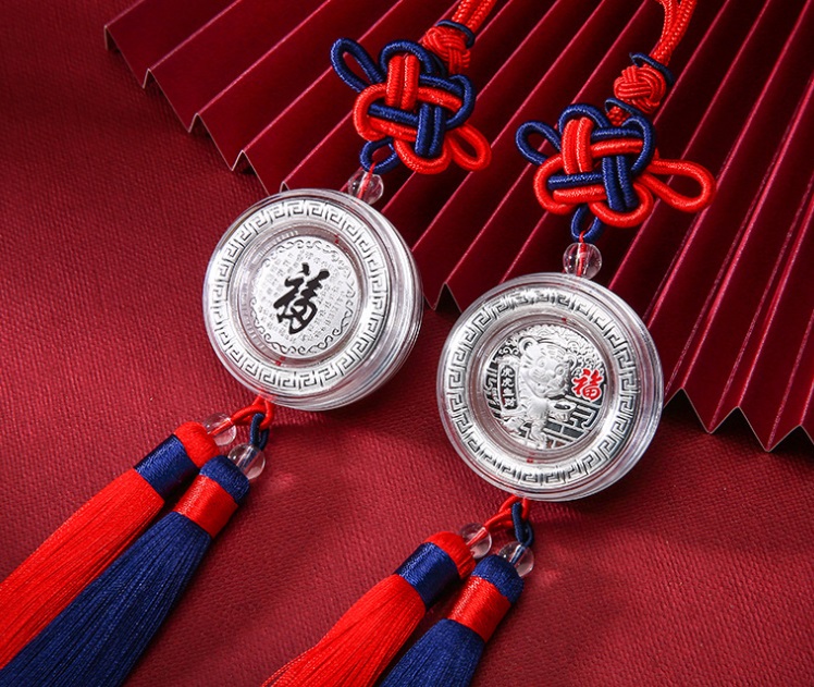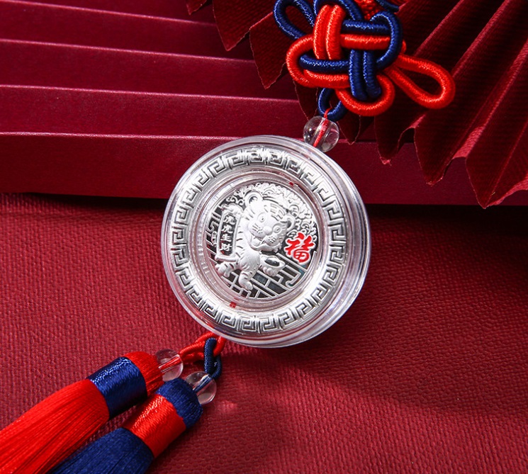 开模定制 虎年生肖纯银车挂
