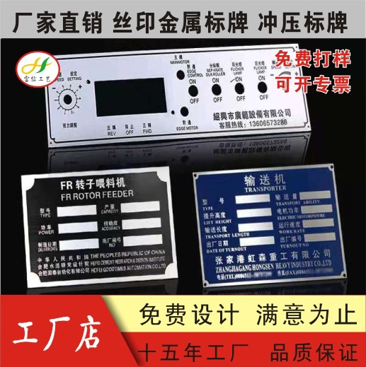 标牌铭牌制作冲压高光铝牌门业公司logo金属丝印凹凸锌合金铜牌