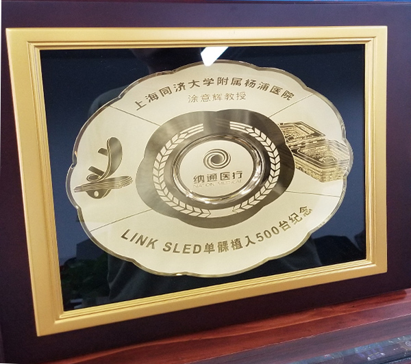 纳通医疗LINKSLED单髁植入500台纪念摆盘