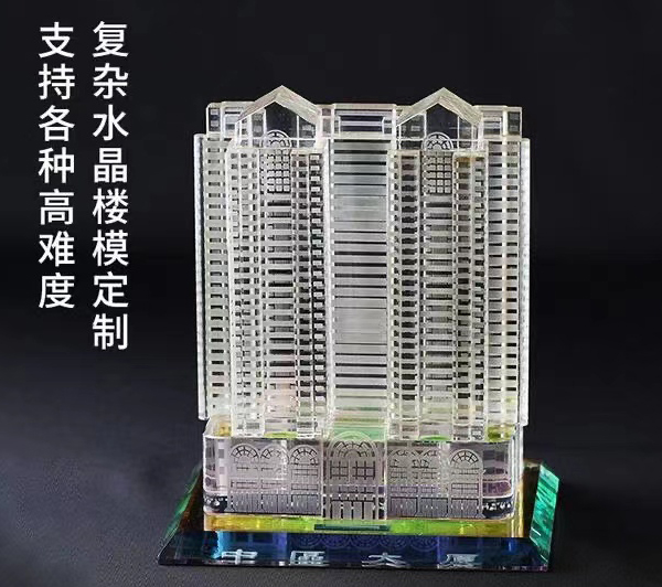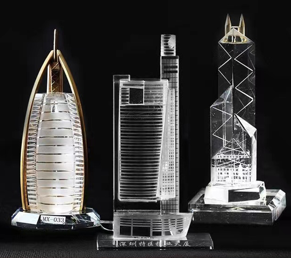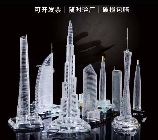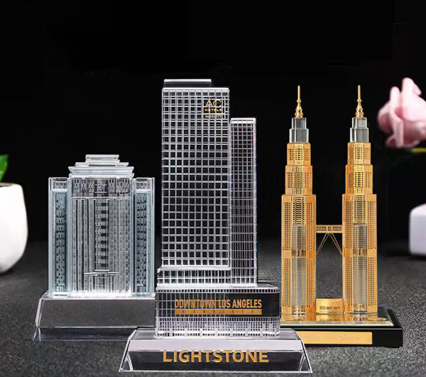 企业定制水晶建筑楼模摆件带金属房地产楼房开盘纪念礼品