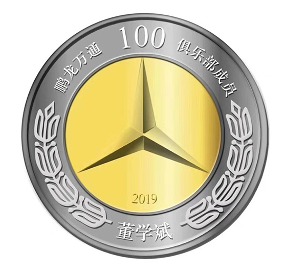 奔驰鹏龙万通100俱乐部成员徽章定制