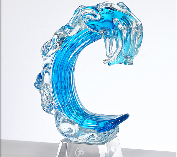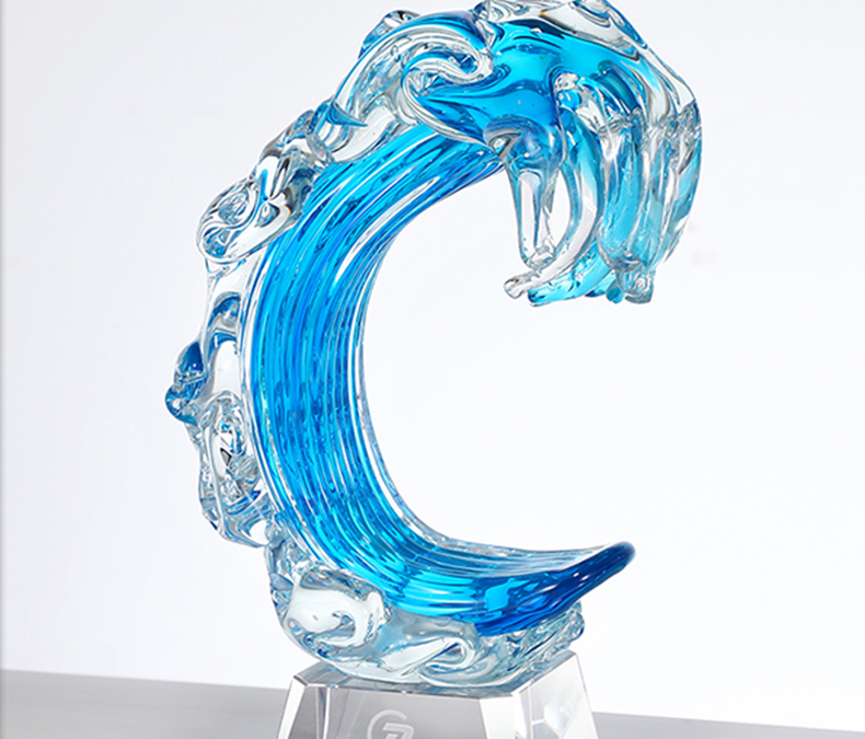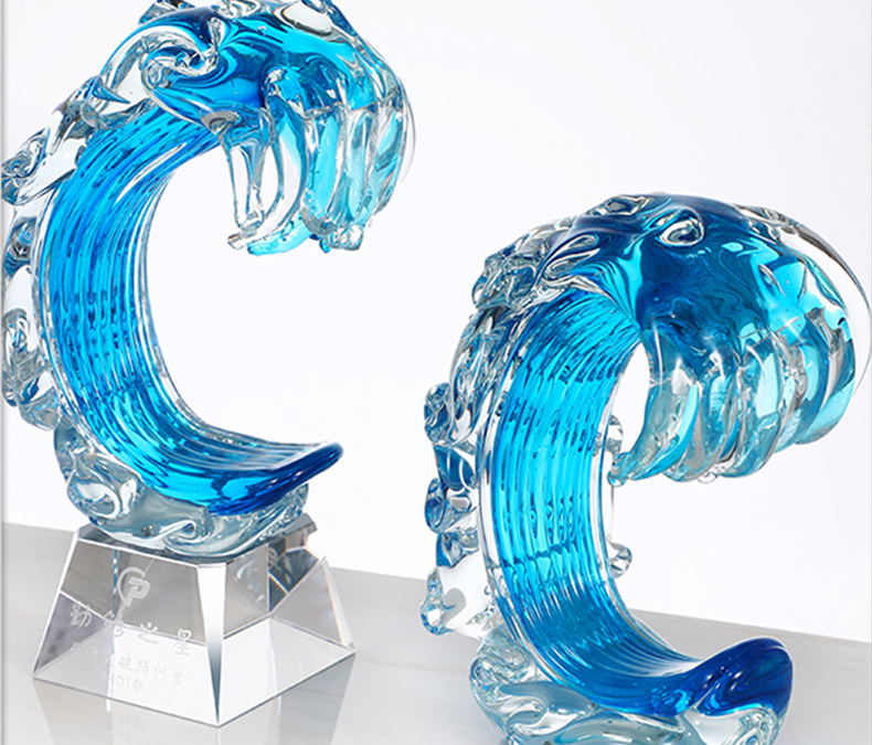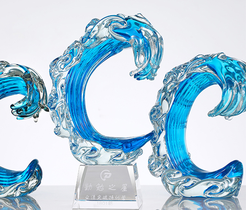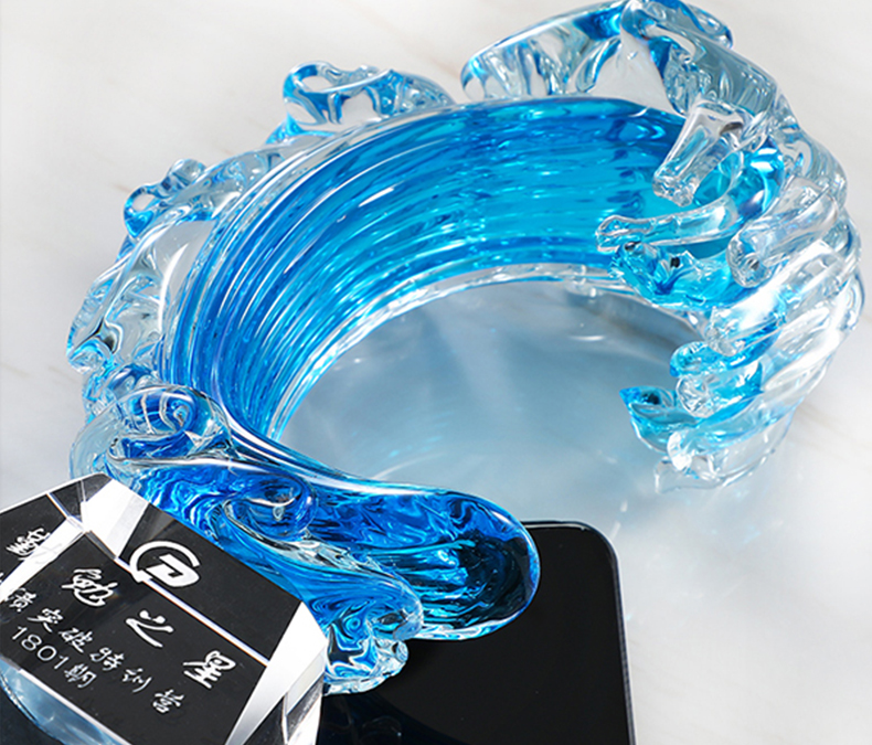 琉璃奖杯酒店摆件创意集团公司团队大型活动颁奖奖牌定制蓝色海浪