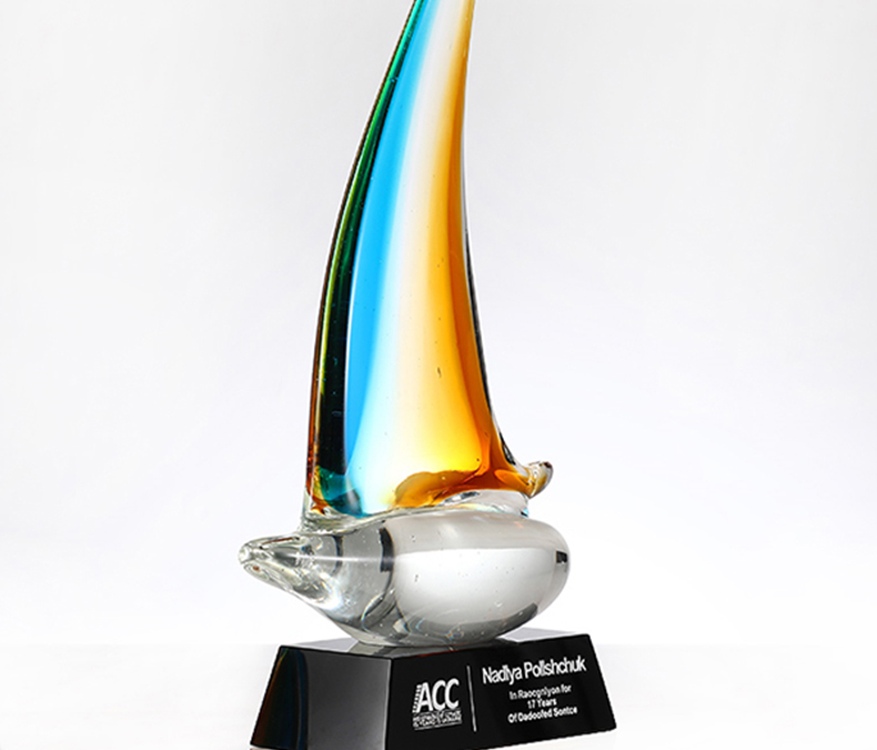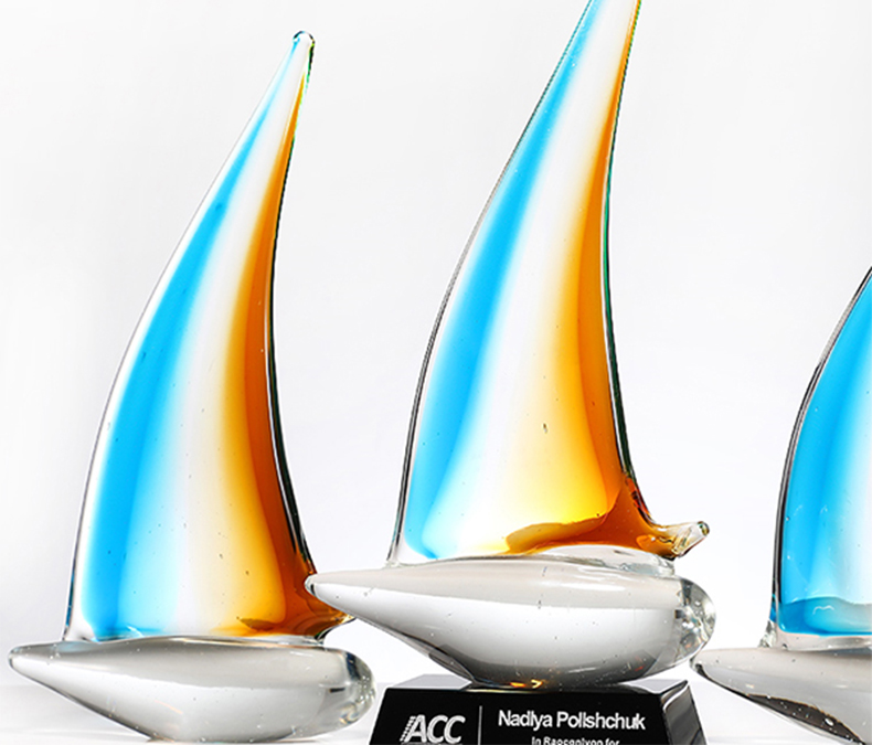 帆船琉璃奖杯定制科技创新金融创意年会颁奖水晶一帆风顺纪念品