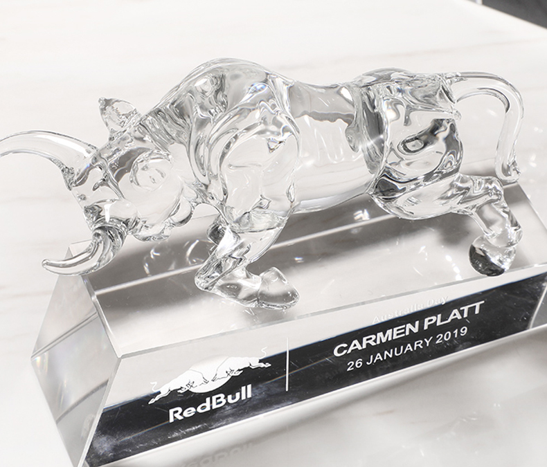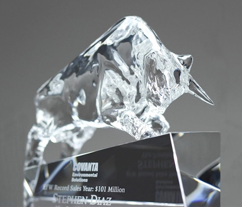 金牛忠诚奖杯水晶定制孺子牛气冲天势气如牛年会红牛优秀员工团队