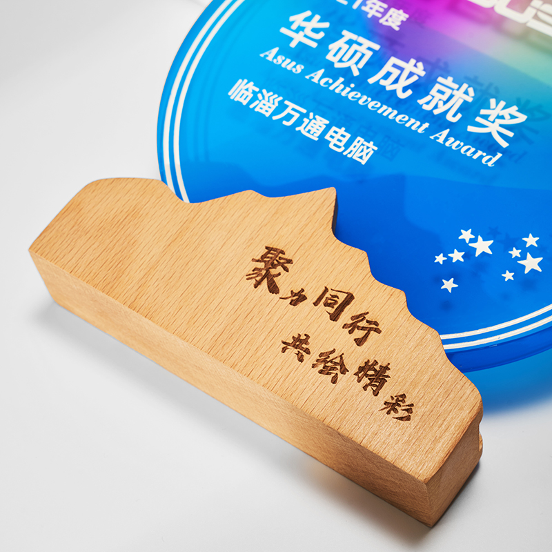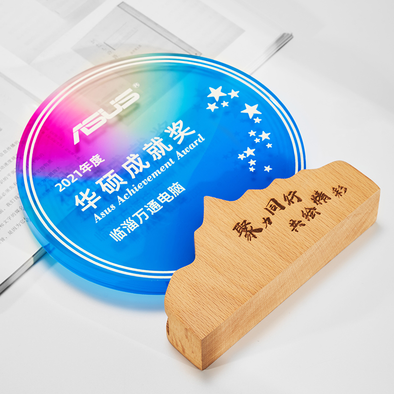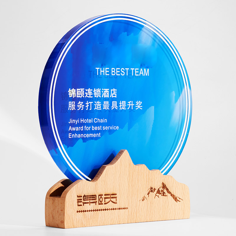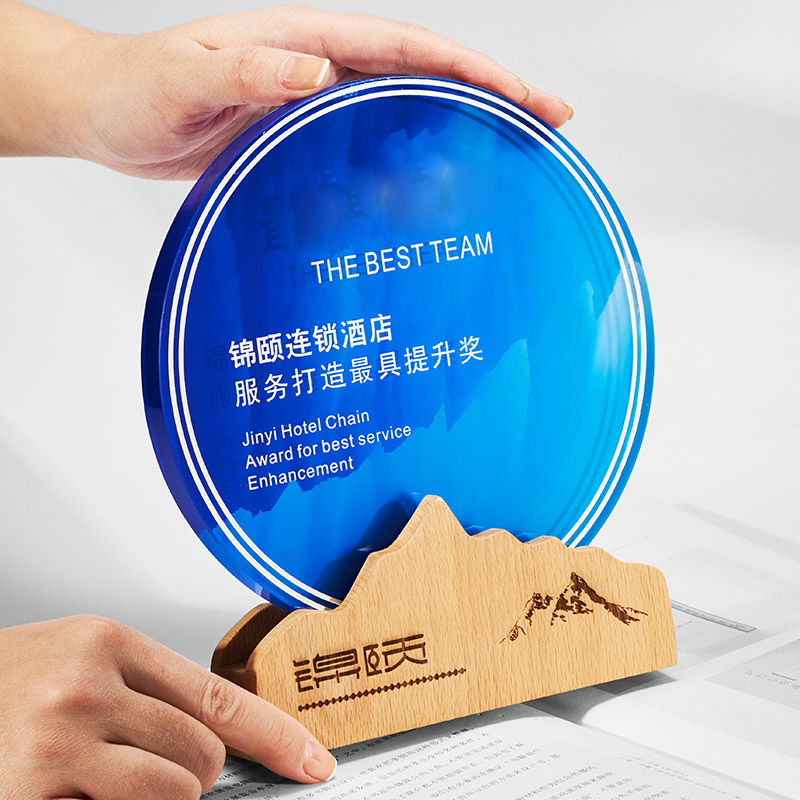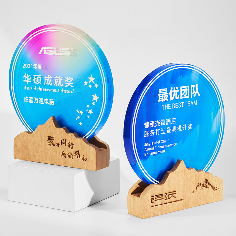 实木质水晶奖杯定制创意订制大气荣誉圆形奖牌优秀员工退休纪念品