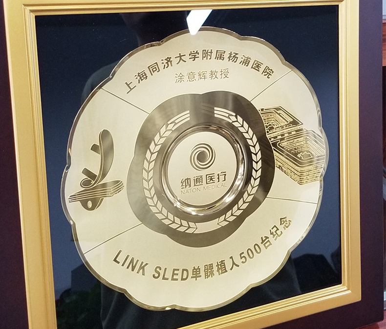纳通医疗LINKSLED单髁植入500台纪念摆盘