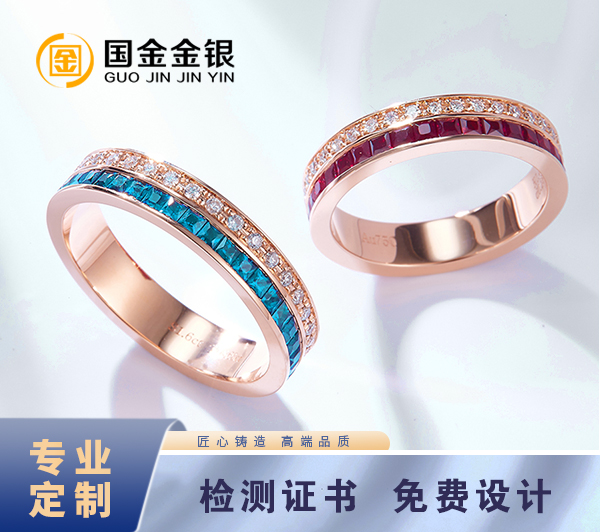 彩金戒指镶钻定制对戒定制金银戒指钻戒订做