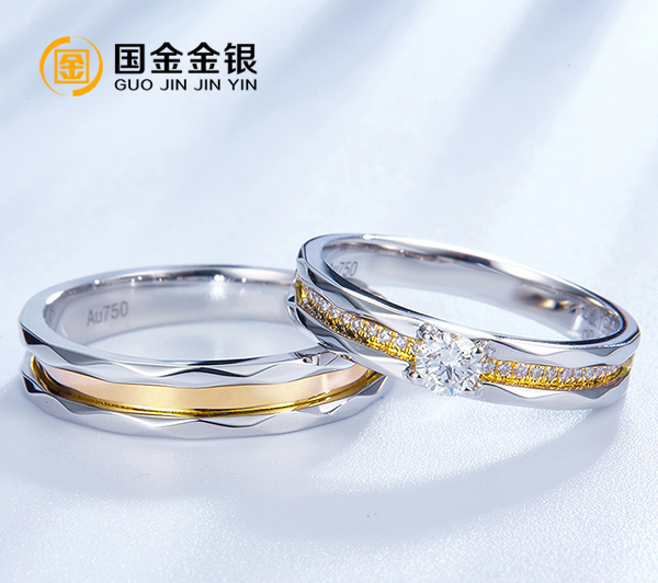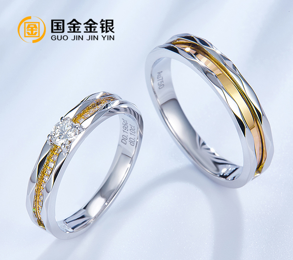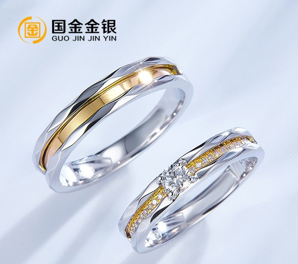陕西定制-银镶金对戒定制专属私人定制婚戒免费设计开模