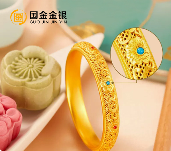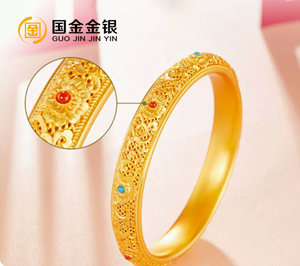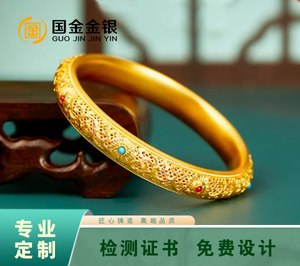 纯金银手镯定制金镶玉彩宝足金9999手镯定制