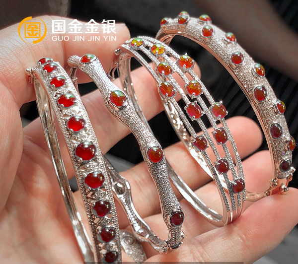 9999银首饰手镯定制镶嵌彩宝定制案例民族风首饰定制