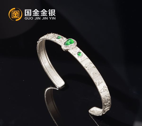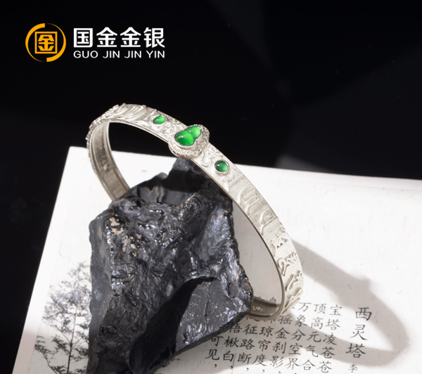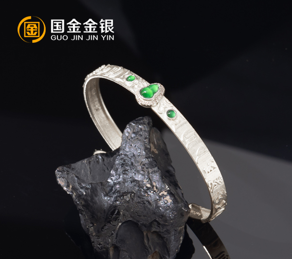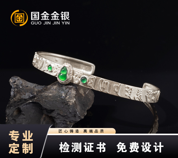 古法9999银定制手镯镶嵌宝石手镯定制