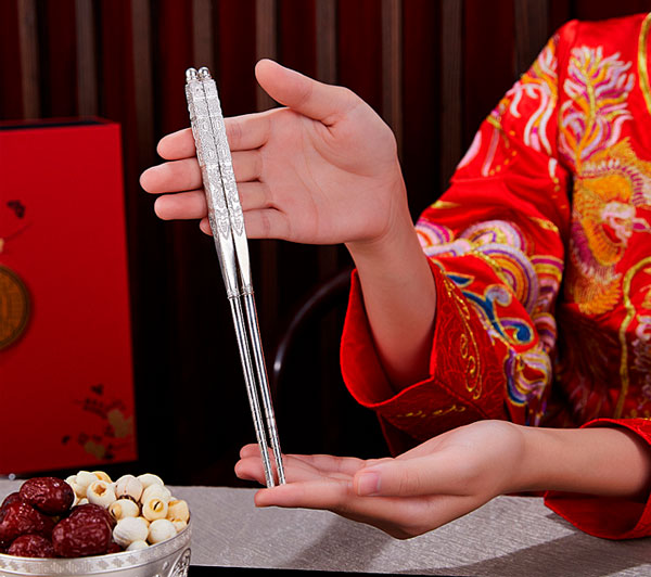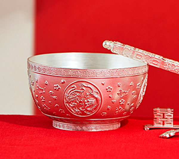 结婚新人礼物纯银餐具碗筷勺套装