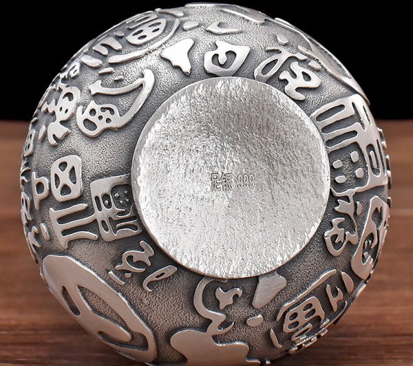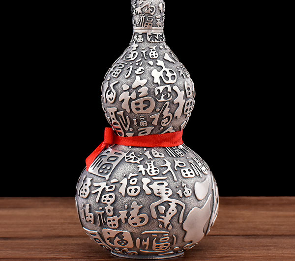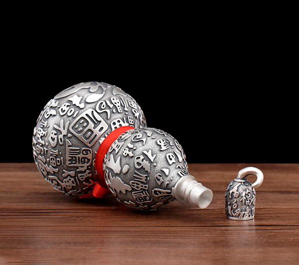 葫芦酒壶纯银999高浮雕百福